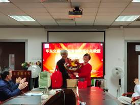 在荣退仪式上,欧阳志刚经理为邓小朱教授送上鲜花并颁发退休教师水晶纪念雕塑;工会主席陈馨向邓小朱教授赠送工会纪念品;经济系主任刘燕萍作为教师代表讲话并送上全体老师的心意。